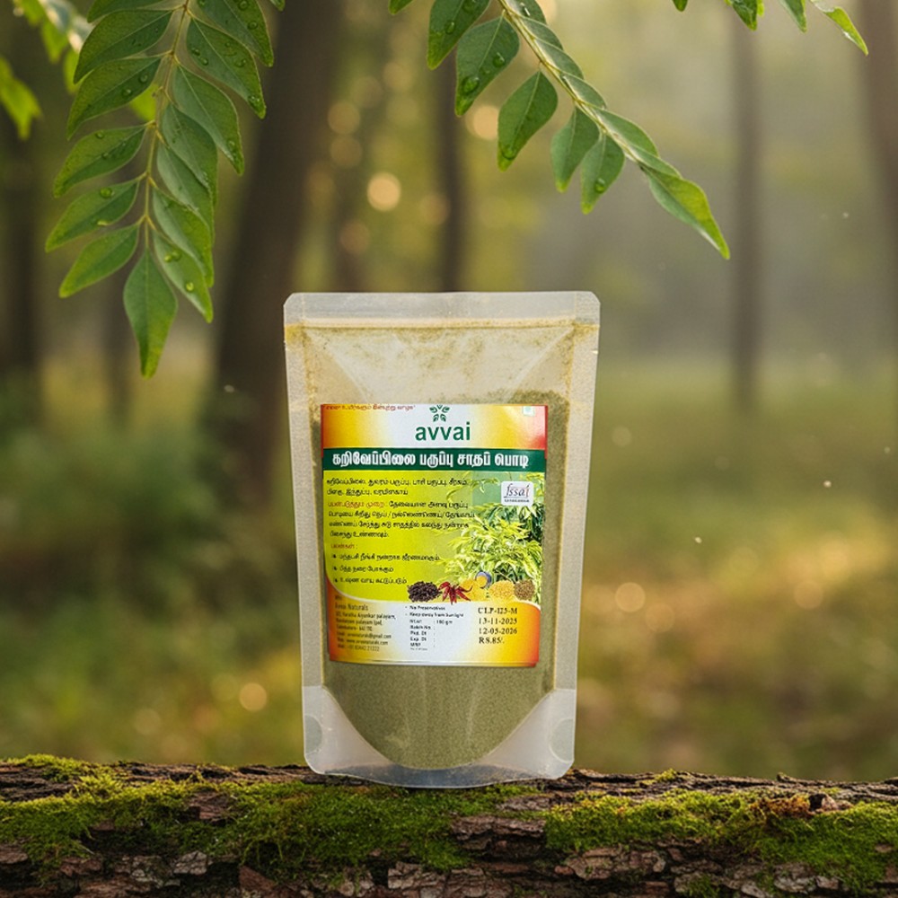+91 82202 22742Savor the authentic taste of Karuveppilai Paruppu Podi, a nutritious blend of freshly harvested curry leaves and aromatic spices. The curry leaves are shade-dried to retain their natural flavor and nutrient content, ensuring a pure and traditional recipe. Perfectly suited for rice, idli, or dosa, this podi enhances your meals with a burst of flavor and health benefits.